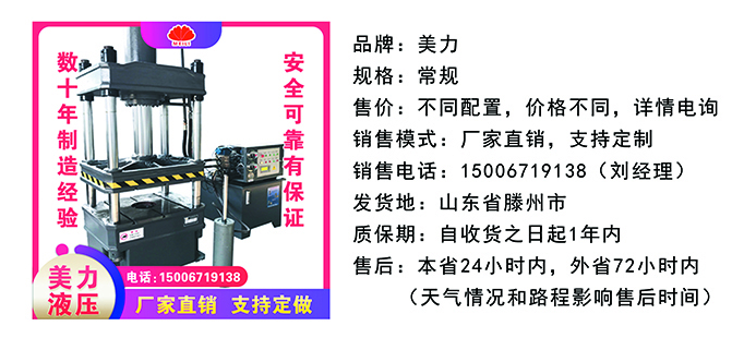 ※功能:美力機(jī)械—液壓機(jī)適用于可塑性材料的壓制工藝,如沖壓、彎曲、翻邊薄拉伸等也可從事校正、壓裝、塑料制品及粉末制品的壓制成型。